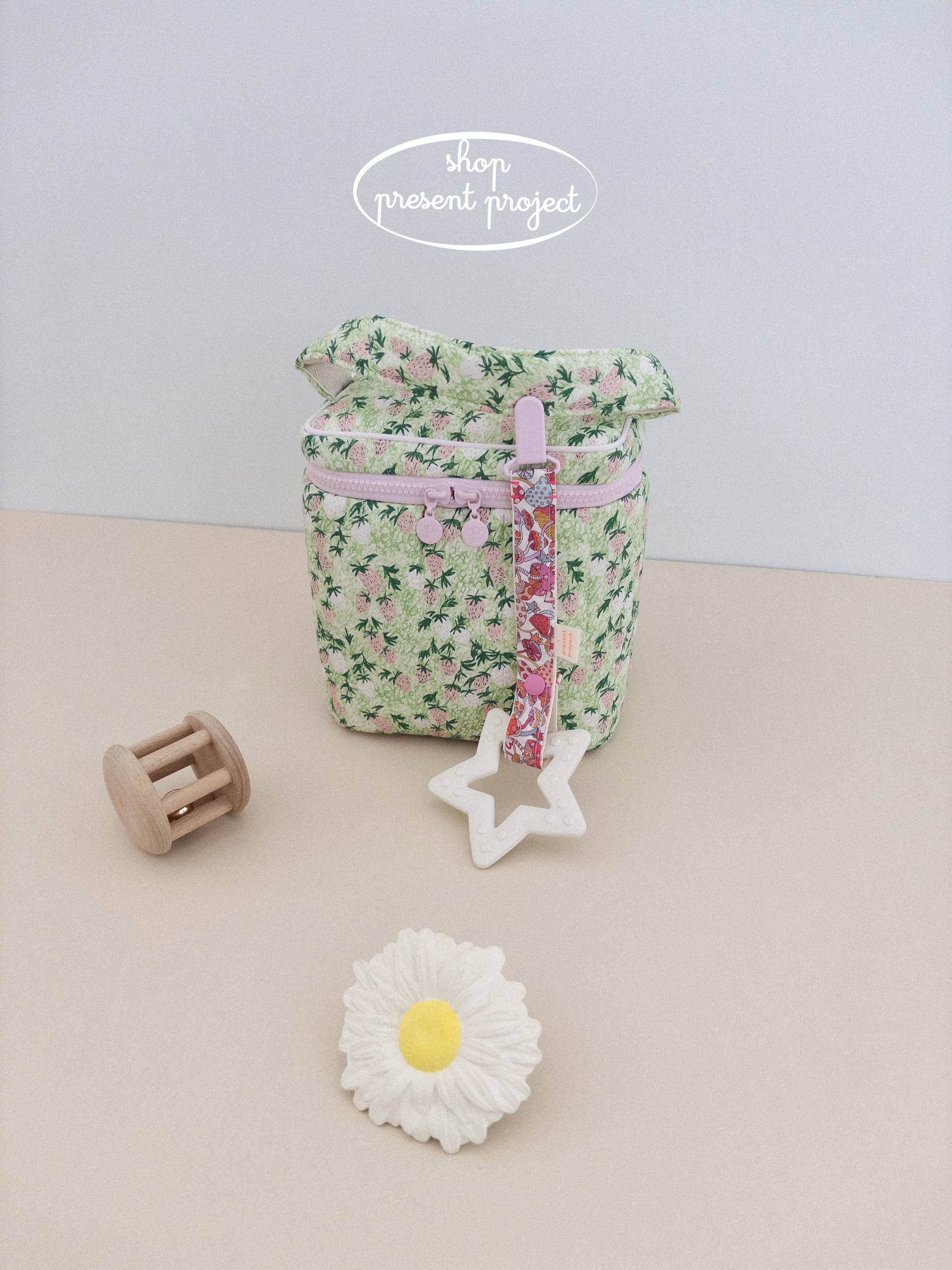 Square drum cold bag - Drawing strawberry green (12/10 18:00 안전재고 오픈)